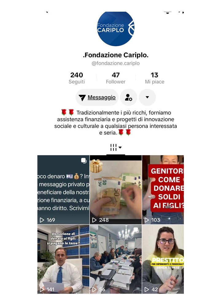 Abbiamo appreso della esistenza di un profilo TikTok che riporta a Fondazione Cariplo.